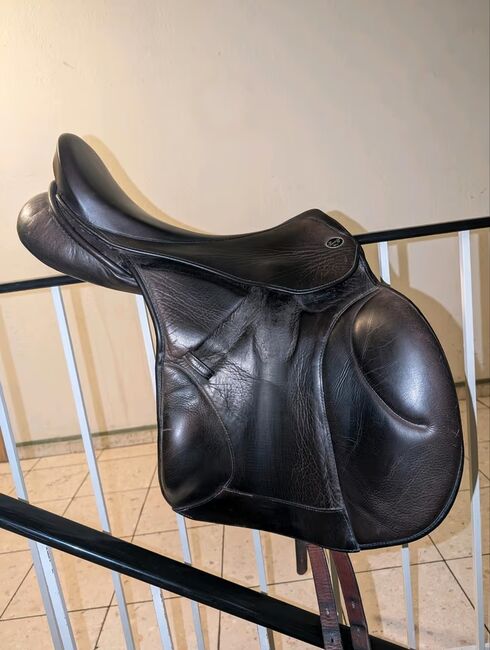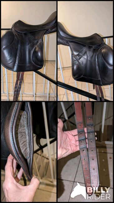 Sattelfarbe braun, doubliertes Spezialleder, Größe entspricht 17,5 Zoll, und hat sehr viele Extras.
