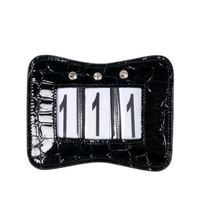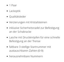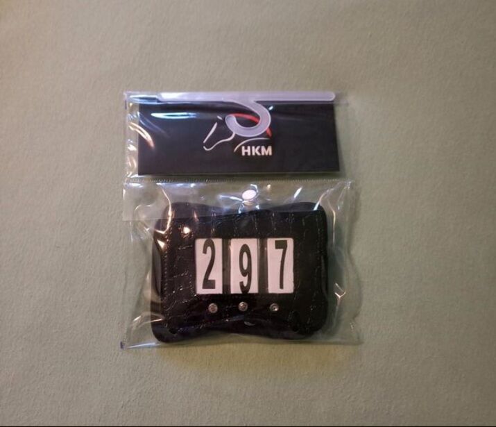NEUES Startnummernset in Originalverpackung der Marke HKM, Modell Viola. Schwarz, Kroko, mit je 3 Glitzersteinchen. Weitere Infos des Herstellers bitte aus den Fotos entnehmen. NP lag bei 23 €.