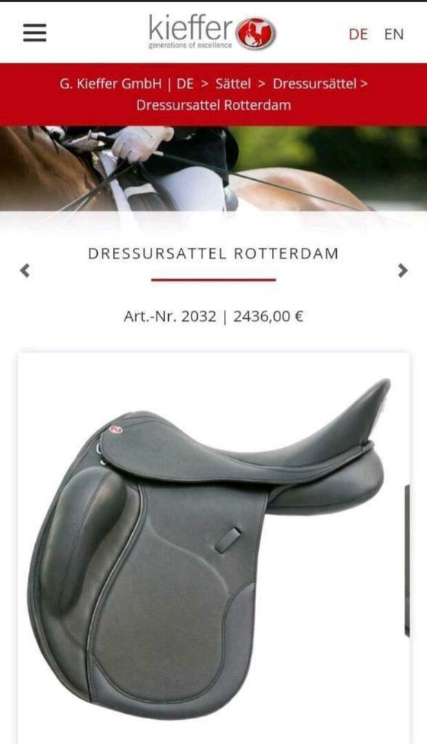 Dressursattel aus dem Hause Kieffer in der Sitzgröße 1, was 17 - 17 1/2 Zoll entspricht. Keine Schrammen o. Ä., sieht aus wie neu! NP lag bei 2.430,00 €.