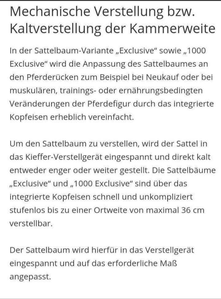 Der Sattel hat einen geraden Baum für das moderne Sportpferd/Sportpony. Wir haben einen Umbau vornehmen lassen: Die Strupfen wurden durch die Kissenrippe geführt, dadurch rutscht der Sattel nicht auf die Schulter, auch wenn die Gurtlage weit vorn ist. Dies ist wohl ein typisches Ponyproblem. Der Preis für die fachgerechten Umbauarbeiten durch den Sattler lag bei