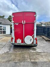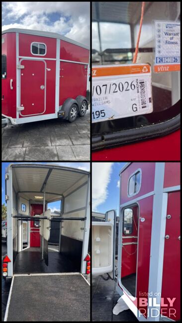 2017 Ifor Williams HB506 Doppel-Pferdewagen, bekannt als sicher, solide und einfach zu ziehen. Entwickelt, um bequem zwei 16.2hh Pferde zu tragen. Standardmäßig mit einem Aluminiumboden ausgestattet, der mit einer 12 mm dicken Gummimatte für hervorragenden Grip, Vibrationsdämpfung und Haltbarkeit bedeckt ist. Läuft mit mechanischen 4-Rad-Bremsen, so dass kein elektrischer Bremsregler erforderlich ist und trotzdem zwei große Pferde sicher transportiert werden können. Zur Standardausstattung gehören: Ersatzrad mit Abdeckung Seitliche Schiebefenster Aluminiumboden mit schützenden Gummimatten Vollständige Mitteltrennung Externe Verzurrösen Innenbeleuchtung An der Tür montiertes Riegelpaket (im Wert von über $500) Dachbelüftung Vordere gasbetriebene Entladerampe (rechte Seite) Rego gültig bis Juli 2026 WOF gültig bis November 2026 Gekauft brandneu und kommt mit allen Quittungen und vollständigen Papierkram. Verfügbar für Besichtigungen. Die Lieferung kann gegen einen Aufpreis arrangiert werden. Ein ordentlicher, zuverlässiger Wagen, bereit zu gehen.