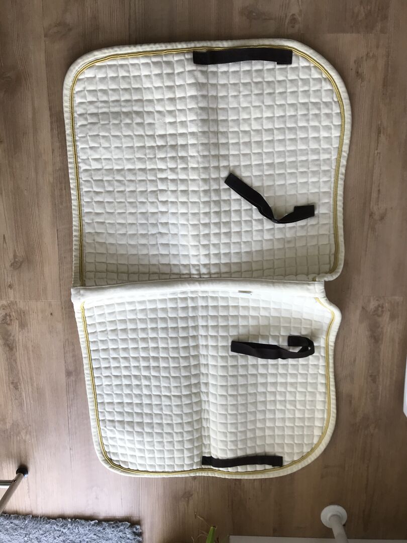 1 x weiß mit schwarzem Samtsaum und goldener Paspel