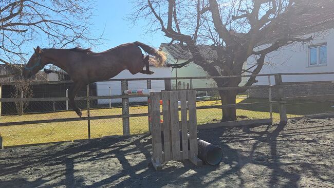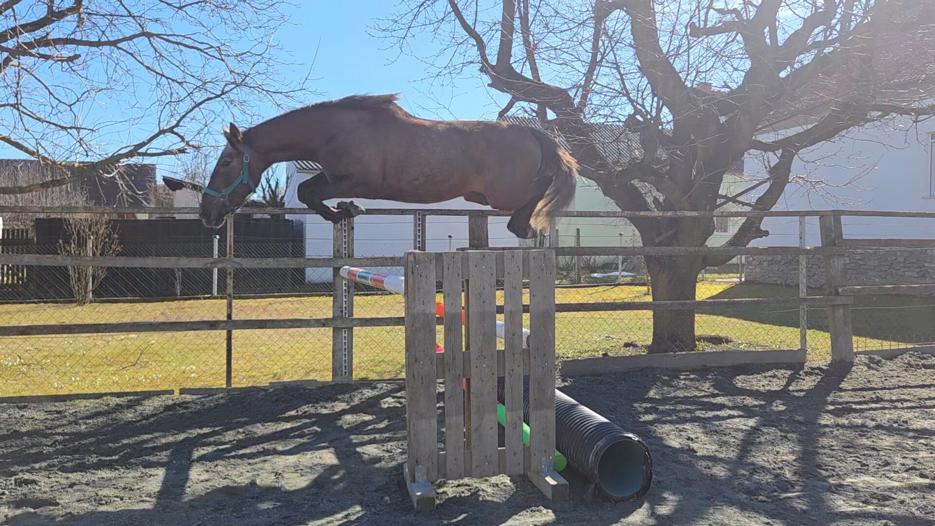 Über die Mutter Tűzgalamb xx bringt sie wertvolles Vollblut mit in ihre Abstammung, was sie zu einem modernen, sportlich eleganten Nachwuchspferd mit viel Herz und Ausdauer macht.