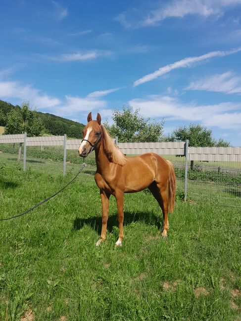 Dieser bildhübscher Hengst sucht ein neues Zuhause. Er ist sehr lernwillig, geht auf den Anhänger und mit ein bisschen Durchsetzungsvermögen kann man mit ihm alles erreichen. Deutsches Reitpony Stute × Vollblutaraber Hengst Größe: momentan ca. 1,35m und ein geschätztes endmaß zwischen 140m - 1,45m. Bei Interesse oder Fragen bitte telefonisch melden