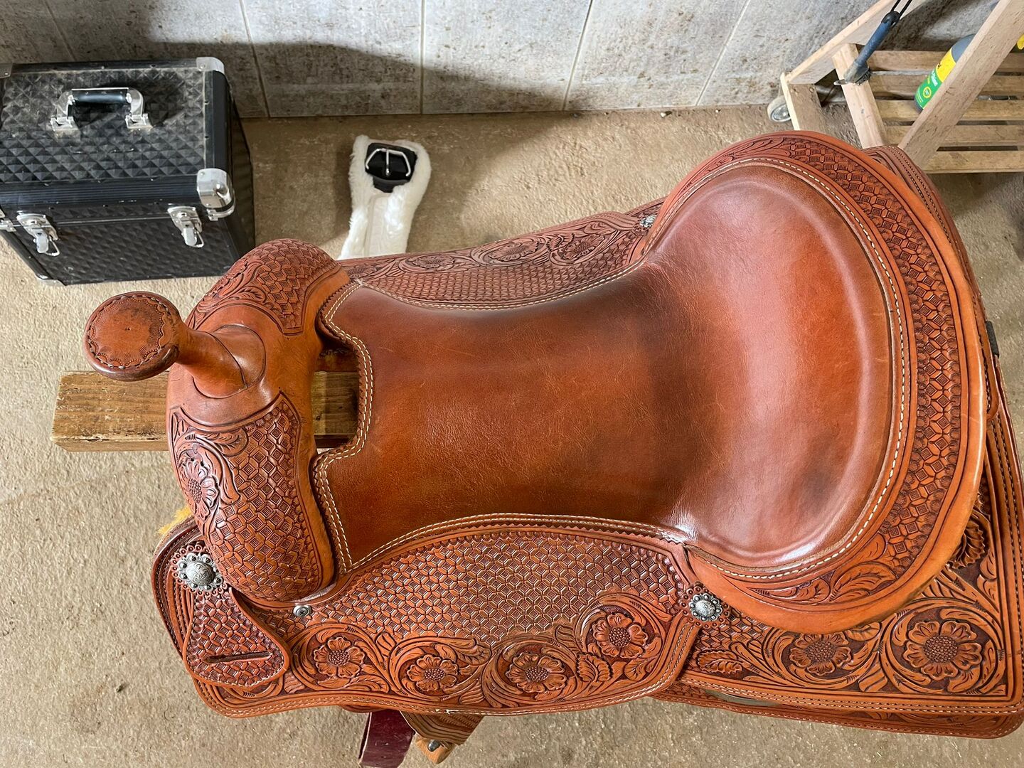 Westernsattel von 4H (Signature). Ich habe ihn 2019 neu gekauft und seit dem auf meinem Paint gehabt. Leider ist nun mein Wallach noch mal gewachsen und ich brauchte einen neuen Sattel. Daher muss ich mich von ihm trennen. Ich habe ihn immer gut gepflegt und er ist soweit Materialtechnisch im einwandfreien Zustand. Leichte Gebrauchsspuren sieht man an den Pfändern sowie Sitzfläche.