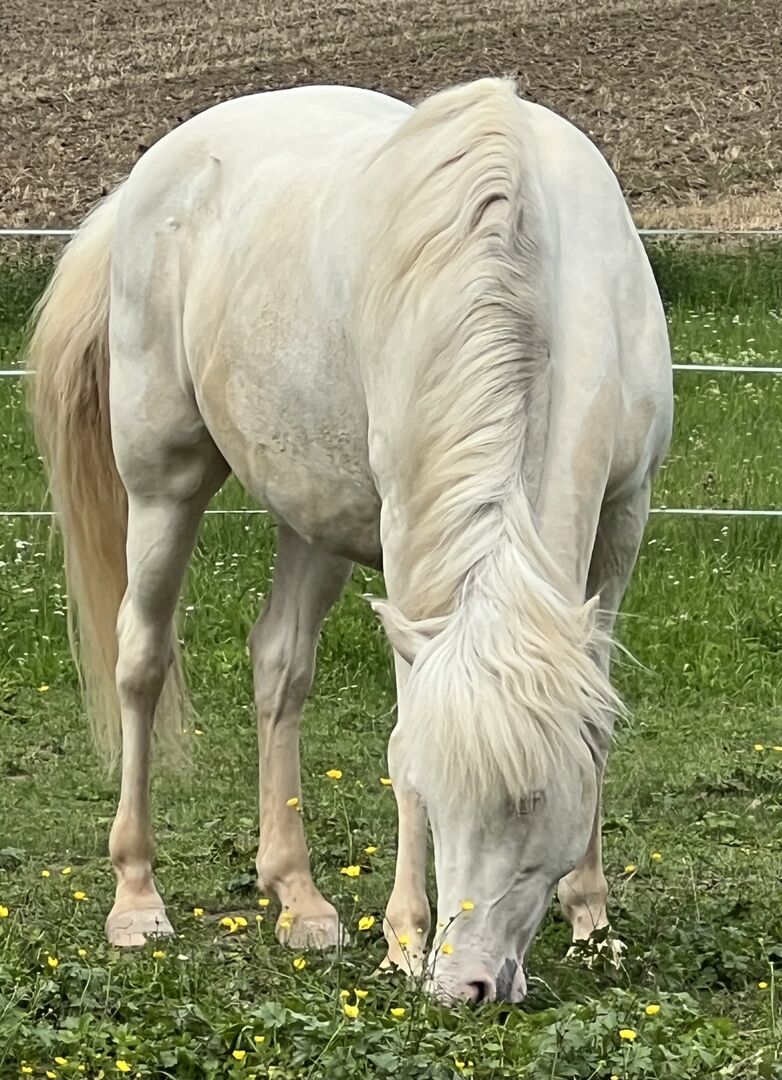 Dieses Pferd bewegt sich frei und schön und wurde bislang ohne Einschränkungen geritten. Er ist ein Pferd, das auch mal eine Weile nicht geritten werden muss, solange Offenstallhaltung und Pferdegesellschaft vorhanden sind. Danach setzt man sich rauf, als wäre man gestern erst gemeinsam unterwegs gewesen.