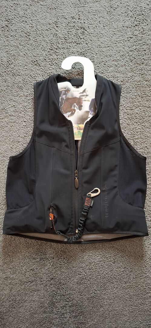 Der FREEJUMP AIRBAG ist eine Schutzweste, welche speziell für den Reitsport entwickelt wurde, um die vitalen Bereiche des Reiters im Falle eines Sturzes zu schützen. Er kann über einer dünnen Schicht Kleidung (T-Shirt, Sweatshirt oder leichter Pullover) oder über einer Jacke getragen werden.