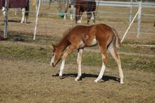 AM Timeless - ein außergewöhnlich typvoller Quarter Horse / Paint Horse Hengst, geboren am 28. Januar 2025. Mit seiner wunderschönen sorrel/sorrel overo Farbe und seinem harmonischen, korrekt gebauten Körper ist er ein echter Eyecatcher. Braxton wird voraussichtlich ein Endmaß von etwa 157-160 cm erreichen und bringt eine hervorragende Bemuskelung mit, sodass er später auch größere Reiter gut abdecken wird. Der junge Hengst ist doppelt registriert, sowohl bei der AQHA als auch bei der APHA, und die Papiere liegen bereits vor. Er ist 5-Panel n/n getestet, selbstverständlich gesund, regelmäßig entwurmt, altersgerecht geimpft und kennt den Tierarzt sowie den Hufschmied. AM Timeless wächst artgerecht im Herdenverband auf und zeigt sich dabei sehr sozial und ausgeglichen.