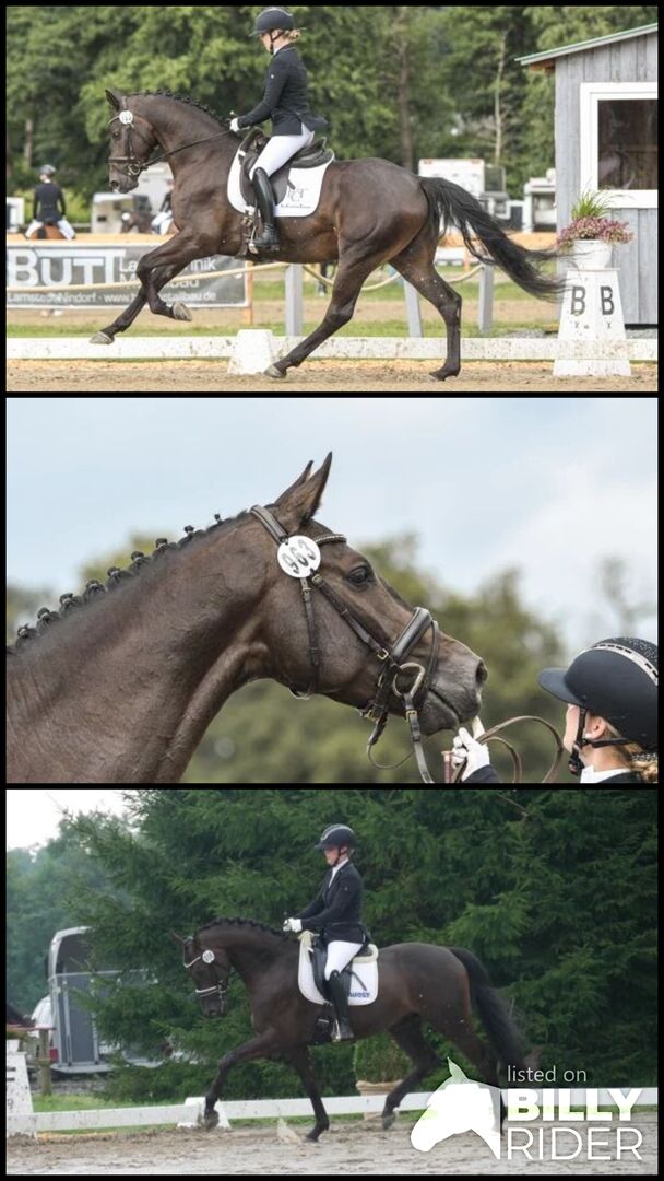*****Schnell sein lohnt sich! Wir haben, wovon viele träumen!**** **Wunderschön** gesund** dunkle Jacke** ideale Größe** super lieb** Herz aus Gold** brav im Umgang ** keine Unarten beim Reiten** top Gänge** bereits Turniererfolgreich** "Hausfrauentransporter" mit Championatsqualität!!!** Hier wird im Auftrag des Züchters ein wunderschöner, sympathischer, super braver, lieber, extrem rittiger, verschmuster 4,5jähriger Wallach angeboten. Mit seiner Größe von derzeit ca. 1,68m (geschätztes Endmaß 1,70m) ist er ein ideales Damen- oder Juniorenpferd. Er verfügt über 3 tolle GGA (einen sehr raumgreifenden Schritt, schwungvollen Trab und bergauf Galoppade) mit sehr guter Veranlagung für die Versammlung! Dabei ist er sehr brav und gelassen beim Reiten. Er hat genügend Go, lässt sich leicht durchs Genick reiten, steht fein an den Hilfen und ist unerschrocken. Er macht einfach täglich Spaß beim Reiten. Außerdem zeichnen sein top Charakter und seine erstklassige Abstammung (Maracana x Lauries Crusador xx) dieses Pferd aus, daher wäre er auch als Umstiegerpferd für Junioren (mit Trainerunterstützung) denkbar. Allerdings ist ein reiterliches Können auf Lizenzniveau wünschenswert, da es sich um ein Jungpferd handelt.