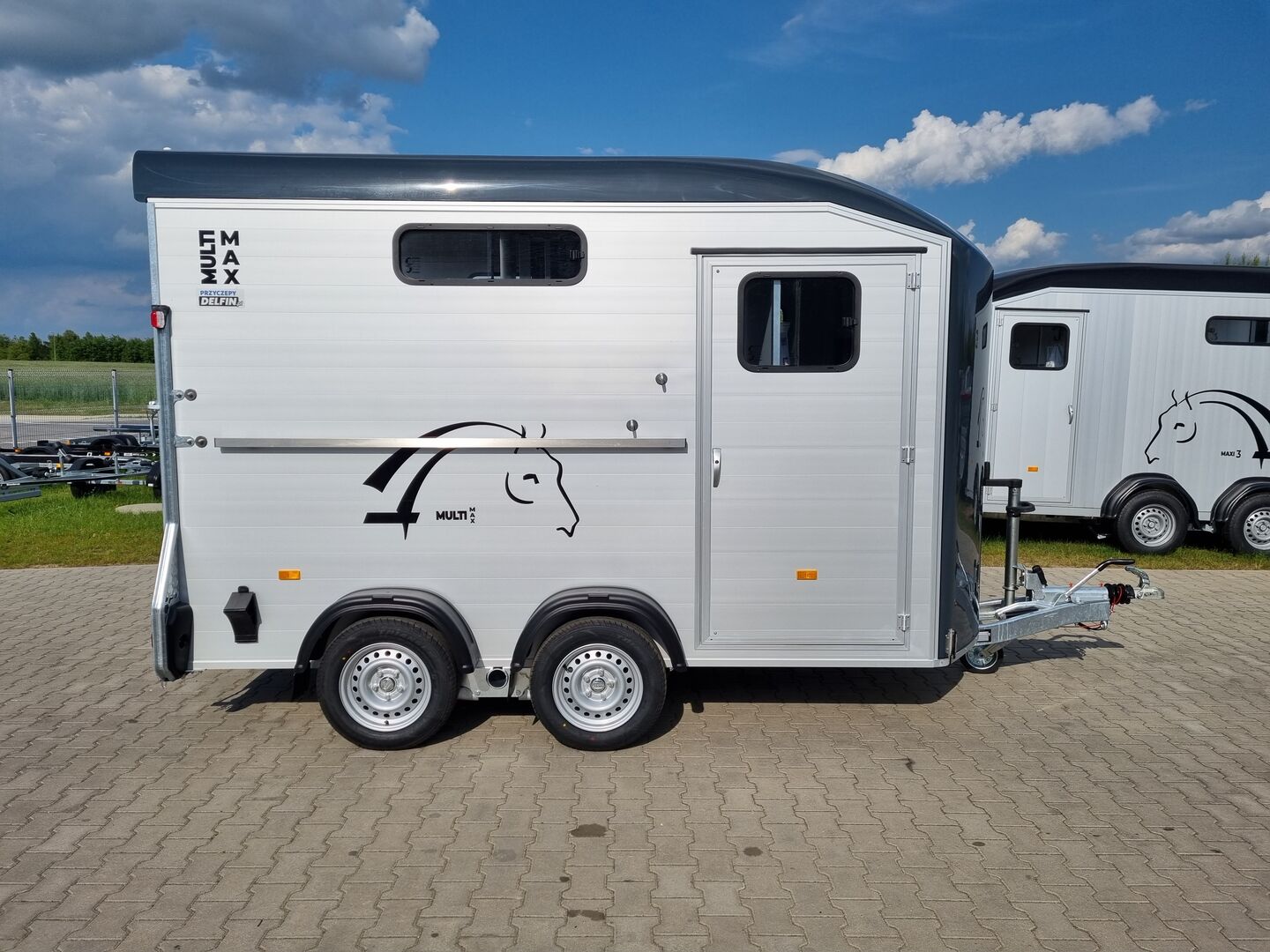 Der Cheval Liberté Multimax ist ein Anhänger für zwei Pferde, der auf maximalen Komfort und Sicherheit ausgelegt ist. Er verfügt über eine große, modulierbare Sattelkammer und robuste Materialien, wobei er ein geringes Eigengewicht aufweist, das für Standardfahrzeuge geeignet ist. Seine Ausstattung bietet eine hervorragende Belüftung, einen flexiblen Innenraum und einen völlig neu gestalteten Sattelraum für professionelle Nutzer.