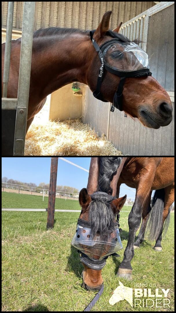 Beschreibung von Equivizor: Der EQUIVIZOR Augenschutz ist für Pferde bestimmt, die an einer Augenkrankheit leiden, sich von einer Augenoperation erholen oder sich oft die Augen kratzen. Die Maske ist aus weichem , klaren PVC hergestellt. Bietet UV-Schutz.
