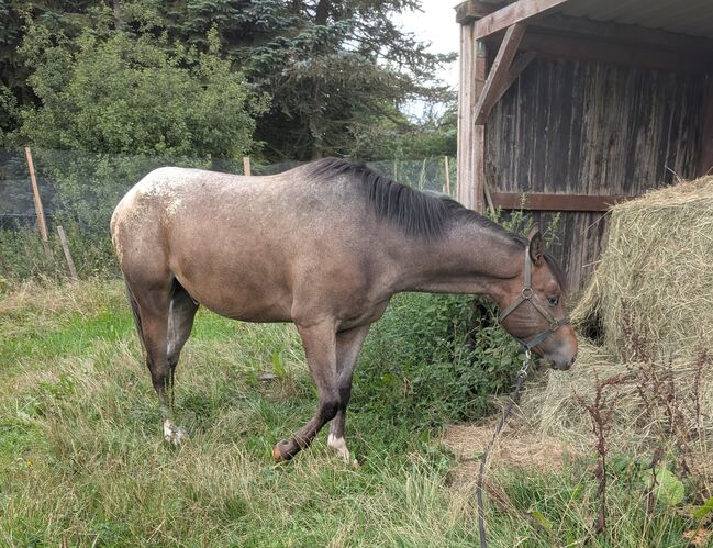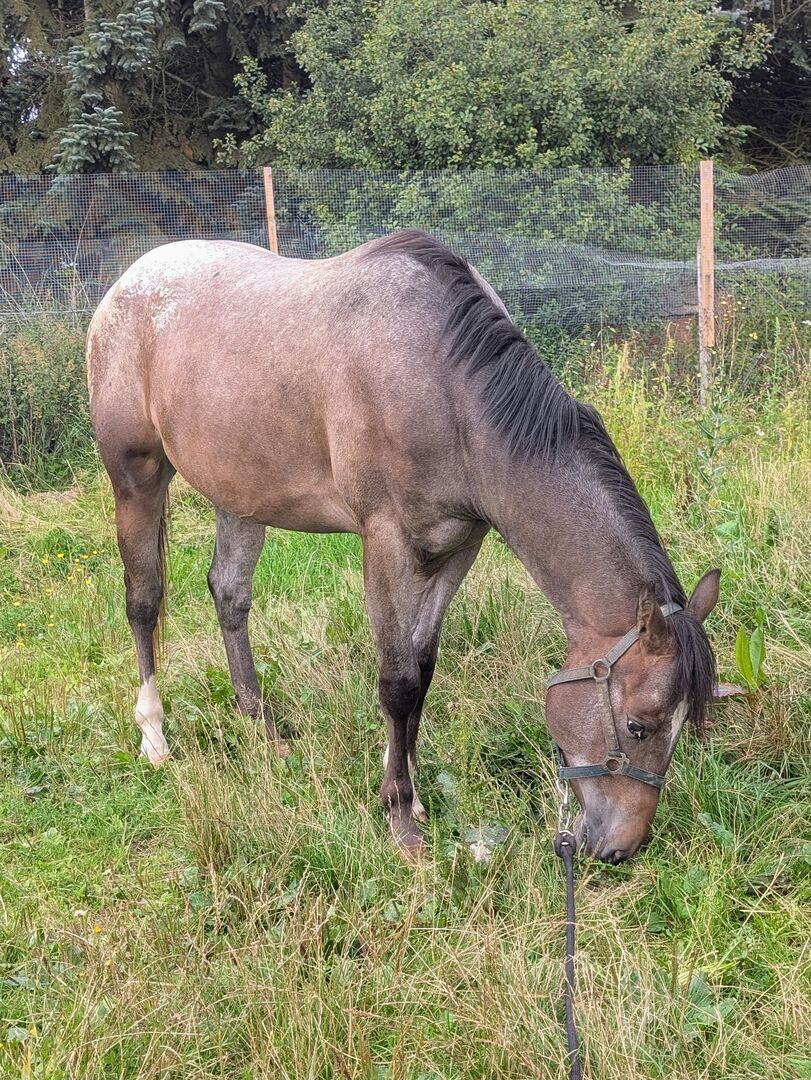 Dee Jay ist ein großer kräftiger Appi Wallach, 157/158 cm Stm. , starke Knochen, harte Hufe. Er wäre jetzt soweit um in den Beritt zu gehen, wir sind befürworter des Anreitens mit 4 oder gar 5 Jahren.