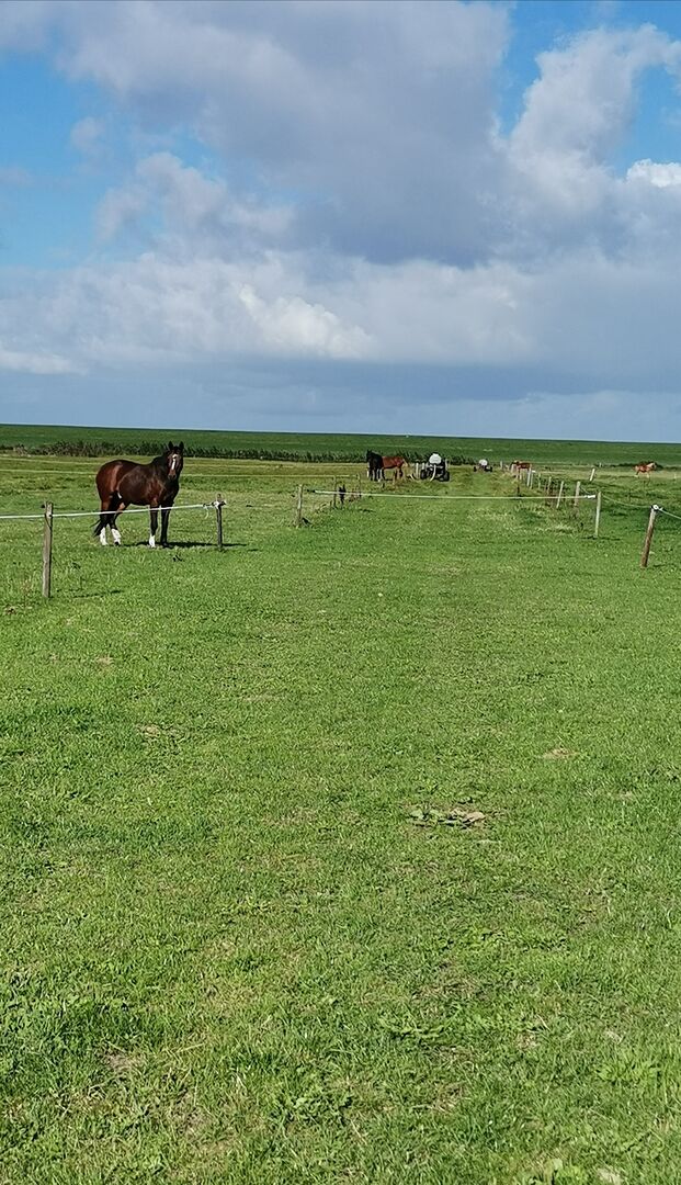 Direkt an der Nordsee Küste mit salzhalter Luft und sehr gutem Gras und ggfl. Heu.