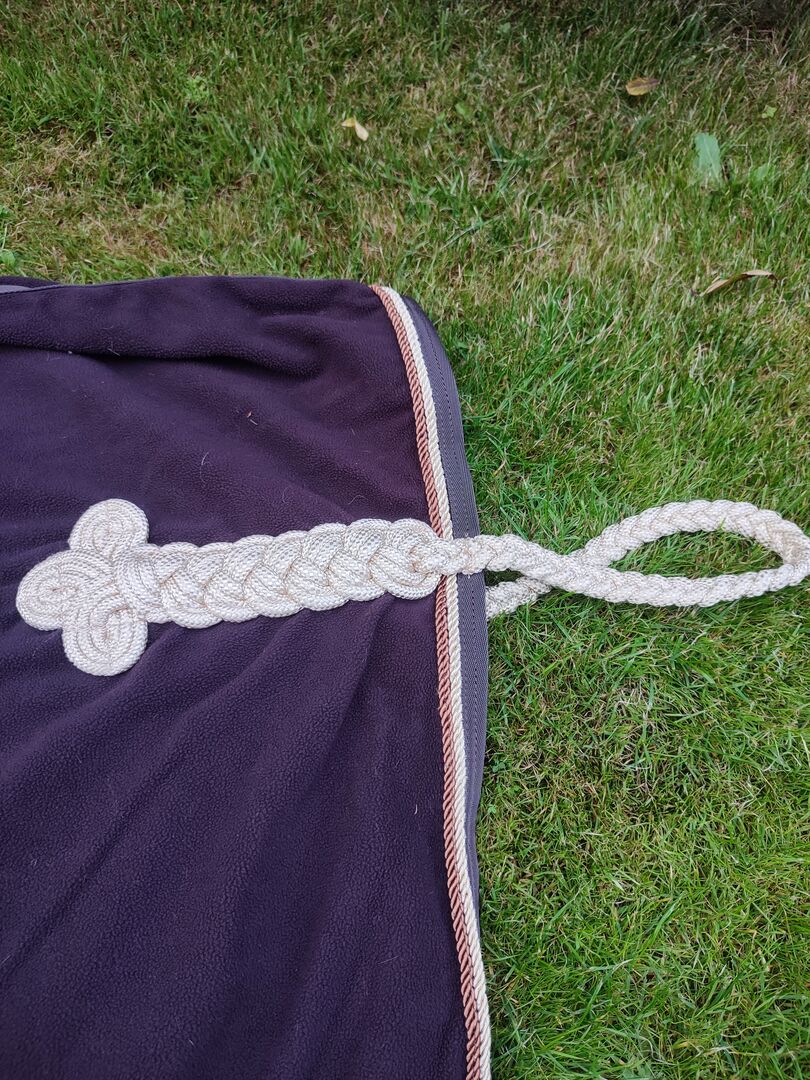 Abschwitzdecke von B Vertigo in Gr. 155 mit dicker goldener Flechtkordel und doppelter Biese. Normale Gebrauchsspuren, aber wenig genutzt und frisch gewaschen.