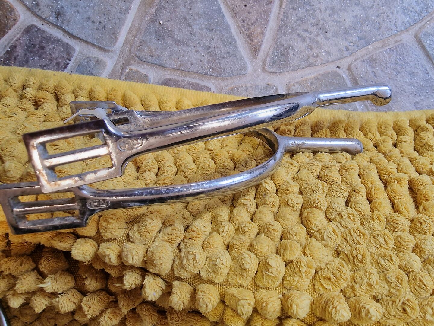 Balkenholzsporne 4,5 m und 5 cm - Ich verkaufe die beiden auf dem Bild gezeigten Sporenpaare in 4,5 und 5 cm. Die mit den Sporenriemen sind bereits verkauft.
