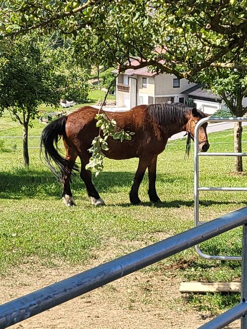 Sehr gemütlicher Wallach, super im Umgang, schmiede- und verladefromm, ehem. Kutschenpferd, Western freizeitmäßig geritten.