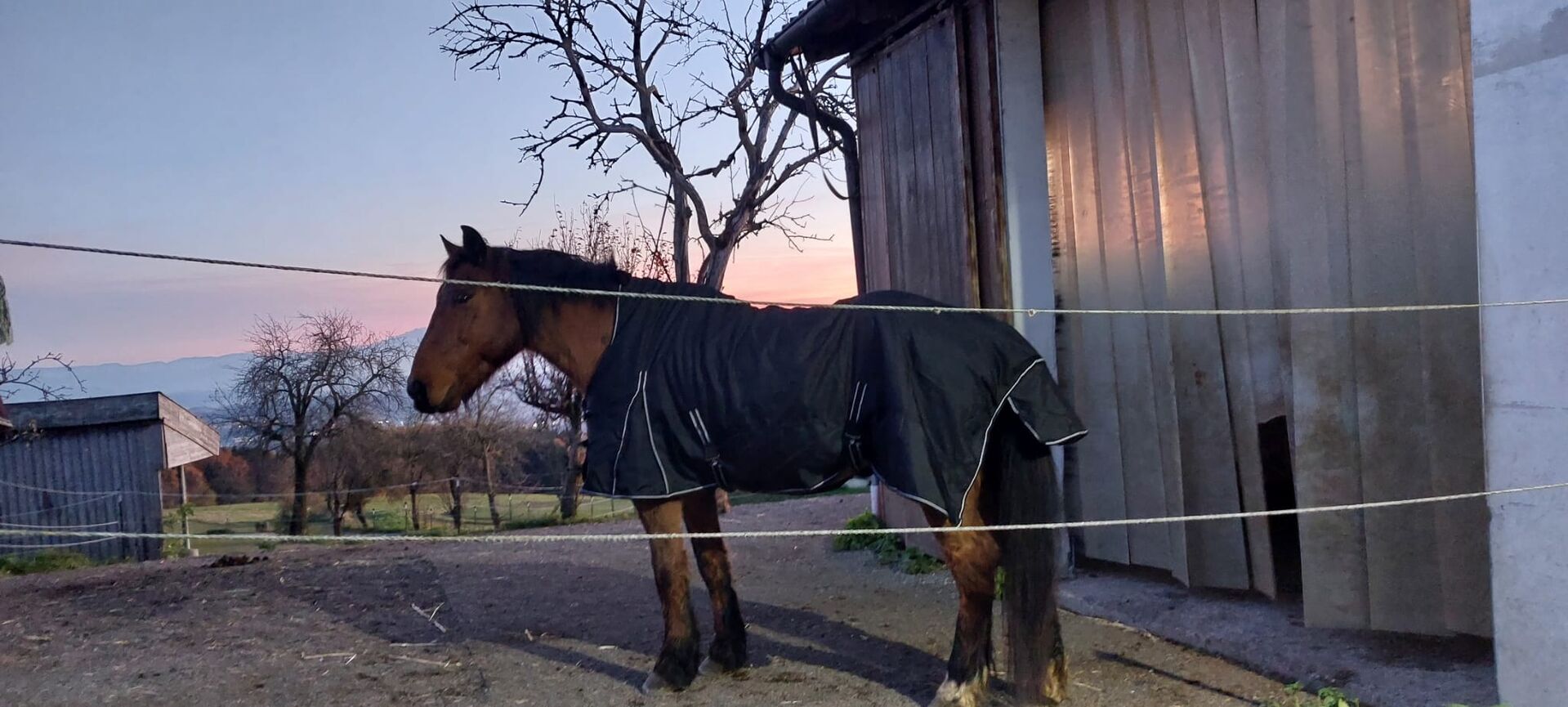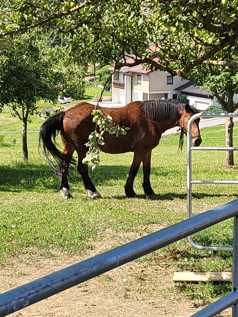Baro, treuer 27 jähriger Noriker Mix mit einem Stockmass von 168 cm.