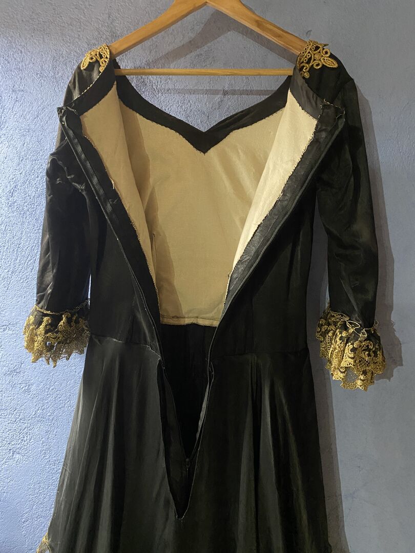 Verkaufe barockes Reitkleid aus Seide Größe M Schwarz mit goldenen Spitzen Ich habe es nur zweimal getragen Zustand - sehr gut ohne Löcher oder Mängel…. Leider passt es mir nicht mehr Habe auch eine deutsche Adresse zum Versenden !!
