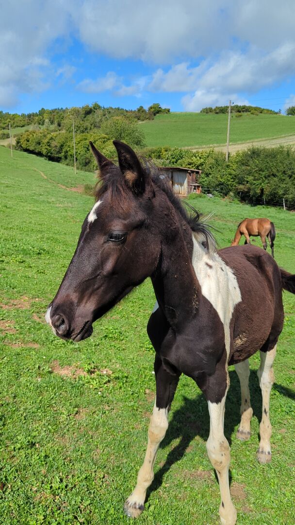 Unsere wunderschöne Azizam besticht nicht nur durch ihre Optik, sondern auch durch ihren traumhaften Charakter. Sie wächst artgerecht mit anderen Fohlen in der Herde auf. Beide Fohlen werden jetzt 1 Jahr alt und erreichen ein Endmaß von 162/164. Auch ihr Bruder (siehe Bilder) steht zum Verkauf. Azizam ist eine Anpaarung aus einer wunderschönen, super lieben Spanier Stute und dem Traumhengst Santiago (letzte Bilder) . Santiago(volles Papier) ist Mr. Cool 😎 und genau das gibt er auch an seine Nachkommen weiter. Für Azizam stehen einige Türen offen, ob als Freizeitpferd, in der Working Equitation, im Westernbereich oder im Showbereich, sie wird definitiv ihren Weg gehen . Hierfür sucht sie nun noch ihren passenden Zweibeinigen Partner. Azizam wird nur in artgerechte Haltung verkauft und an Menschen mit Pferdeverstand!!! Aktuell zum Winterpreis