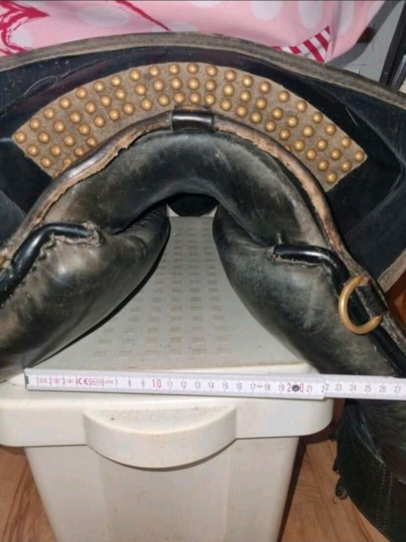 Barocksattel. Passend für Konfektionsgr. 40/42 maximale 44 aber dann hält er dich an den Oberschenkel zwischen den Galerien gut fest.
