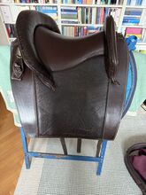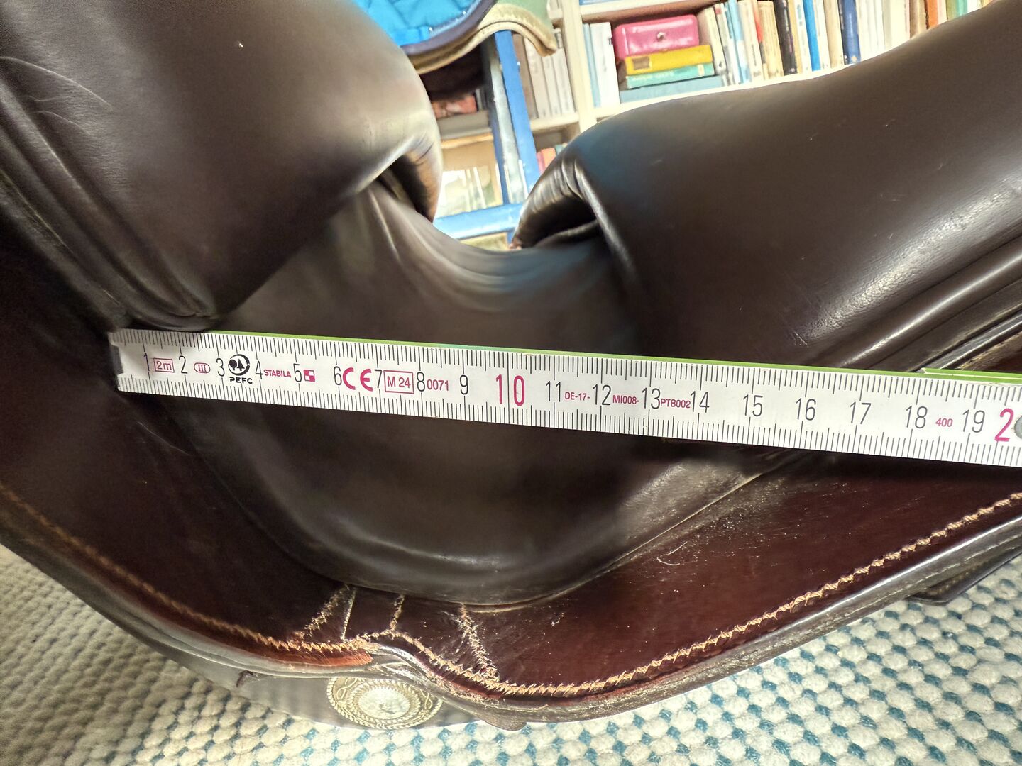 Ich habe mich für den Lederbaum entschieden, da mein Pferd noch jung und wenig bemuskelt war. Der Sattel ist praktisch mit dem Pferd 'mitgewachsen', ohne ihn umarbeiten zu müssen.Er wurde ca 2 Jahre geritten, da noch ein 2. Sattel zur Verfügung stand, von daher hat der Sattel wenig Gebrauchsspuren und die Polsterung ist tadellos.Die Maße bitten den Bildern entnehmen. Die Sitzfläche ist aus strapazierfähigem Leder, Seitenteile und Galerie aus geprägtem Polsterleder, dünn gehalten, um näher am Pferd zu sein. Kurzgurt und