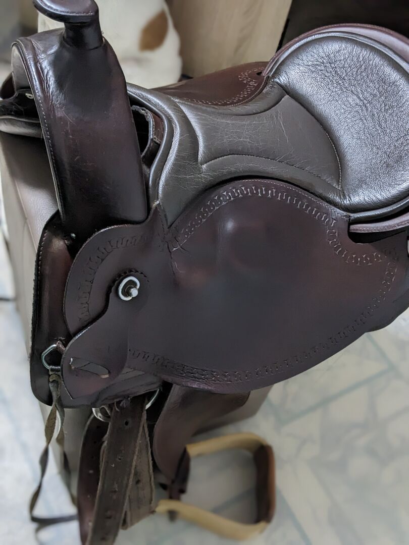 Gebrauchter Westernsattel für breite Pferde. Denkbar von stark bemuskelten quarter, hafi, Tinker oder kleines Kaltblut. 16 Zoll Sitzfläche. Ich gebe noch einen neuen sattelgurt dazu in 26 oder 28 Zoll.