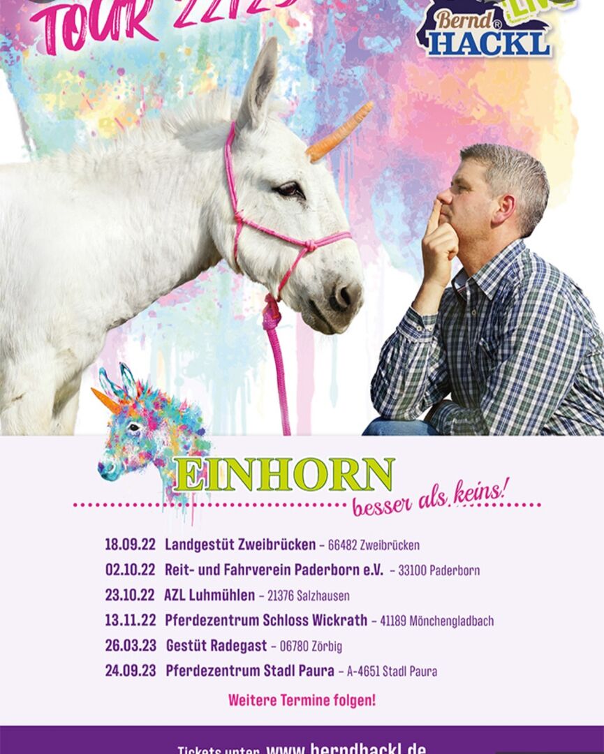 Ich verkaufe schweren Herzens meine Karte für die Bernd Hackl Tour 'einhorn- besser als keins' am 13.11.22 im Schloss Wickrath bei Mönchengladbach. Mir ist leider etwas dazwischen gekommen . Es handelt sich um ein E-Ticket, dass man selbst ausdrucken müsste. Bei Fragen gerne melden
