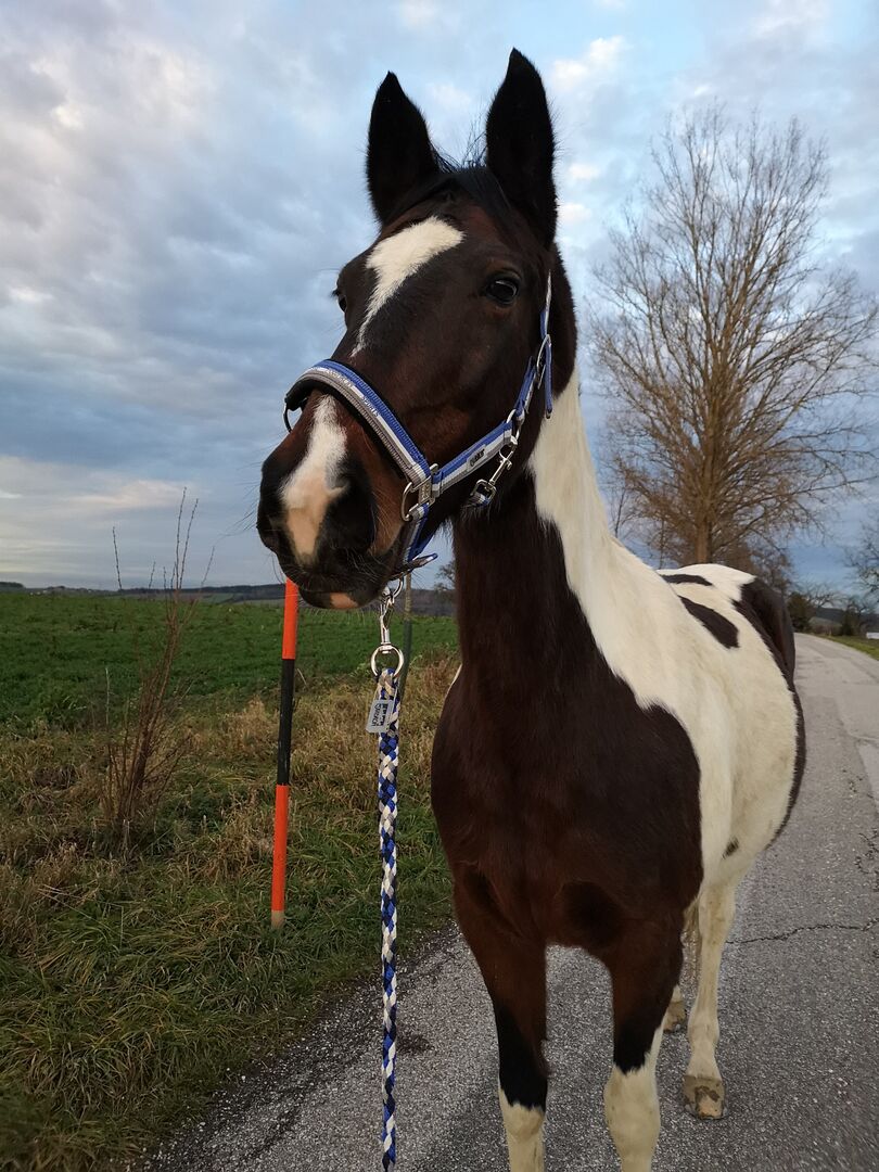 Für meine 20 jährige Warmblut-Pony-Mix Stute suche ich eine zuverlässige Reitbeteiligung. Sie ist 152 cm groß, eine hübsche Schecke und sehr brav im Umgang. Mit ihr ist vieles möglich: von Bodenarbeit bis hin zu gemütlichen Ausritten. Sie wird freizeitmäßig geritten, sowohl englisch als auch western (derzeit habe ich nur einen Westernsattel und ein Pad für das Reiten ohne Sattel). Wir stehen in einem kleinen Stall in Krexham (4624 Pennewang) mit einem Reitplatz und einem schönen Ausreitgelände.