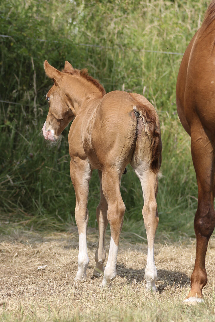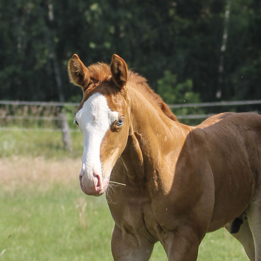 Cole - seine schöne Farbe, das blaue Auge und sein bildhübsches Erscheinungsbild machen ihn zu einem echten Hingucker. Er ist 2025 geboren und wird ein geschätztes Endmaß von 150 cm bekommen. Cole ist ein kompaktes, kräftiges und stark bemuskeltes Quarter Horse Hengstfohlen. Sein gutes Gebäude, seine Gesundheit und sein freundlicher, menschenbezogener Charakter sprechen für ihn. Cole ist gut sozialisiert, kennt Tierarzt und Hufschmied, wächst in einer kleinen Stuten- und Fohlengruppe auf. Seine Gelassenheit, Lernwilligkeit und Offenheit machen ihn leicht im Handling und sehr angenehm im Umgang. Mit erstklassiger Reining-Abstammung ist er bestens für den Sport, Turnier oder auch die Freizeit geeignet. Cole zeigt beeindruckende Bewegungen und hat das Potenzial, ein richtig athletisches Pferd zu werden. Da er ein Hengstanwärter ist, wird er gerne in entsprechende Hände abgegeben, aber auch Freizeitreiter mit gehobenen Ansprüchen können mit ihm glücklich werden. Die klinische AKU wird im Rahmen des Verkaufs von der Züchterin in Auftrag gegeben.