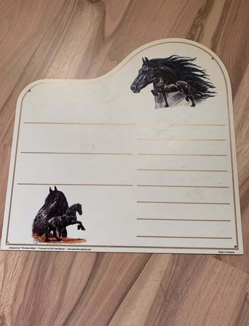Ich verkaufe ein Pferdeboxenschild (neu). Dieses ist leicht anzubringen durch vier Löcher.