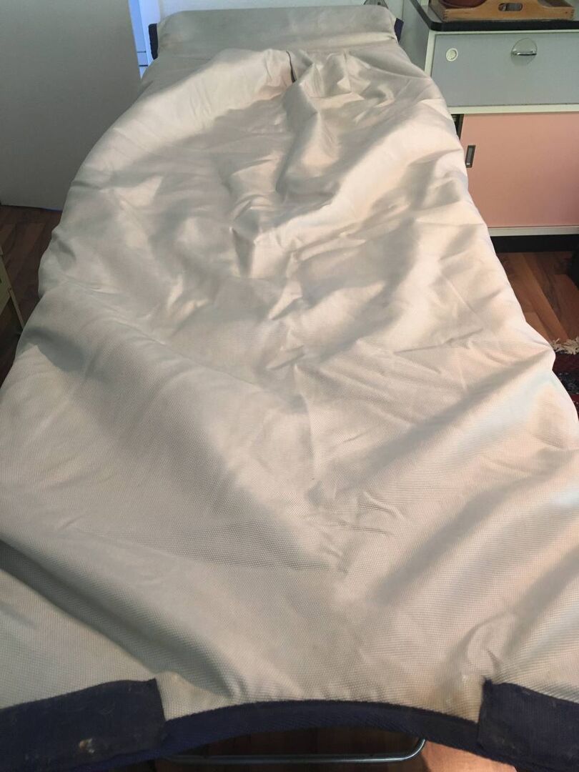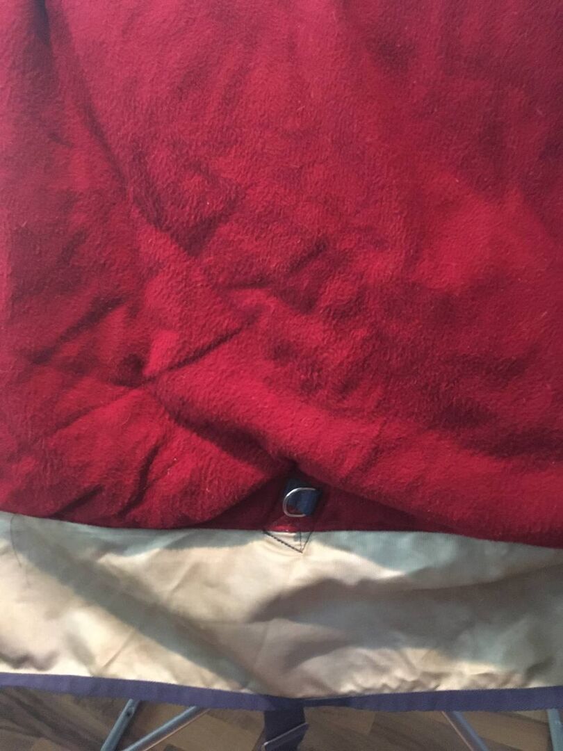 Die Decke hat kein einziges Loch oder Ratscher, ist absolut wasserdicht und in einem insgesamt gutem und ordentlichem Zustand. Alle Schnallen sind in glänzendem Zustand. Sie wurde regelmäßig professionell gereinigt und imprägniert und kommt so gut wie haarfrei, auch in den Klettverschlüßen. Alle Gebrauchsspuren sind weiter unten genau aufgelistet.