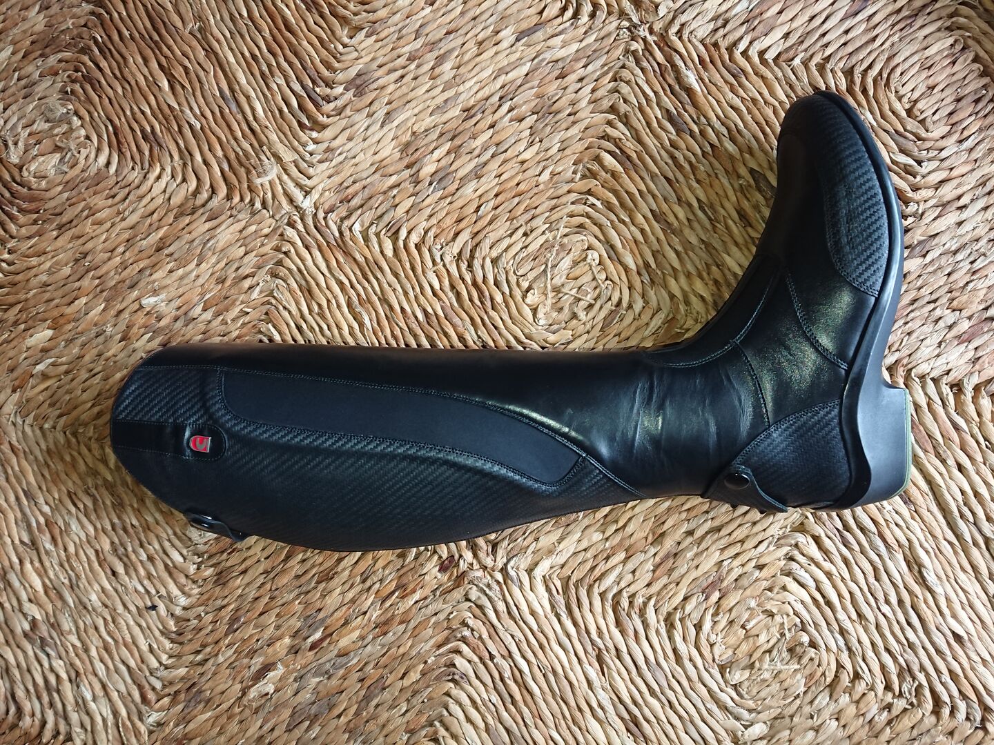 Ich biete hier mega stylische Carbon Boots von Cavallo an. Ich habe mich leider vermessen bei der Höhe und somit kann ich mit den Stiefeln reiten. Ich habe die Stiefel nur einmal zu Hause anprobiert, seitdem liegen sie im Originalkarton herum und warten auf ihren Einsatz.