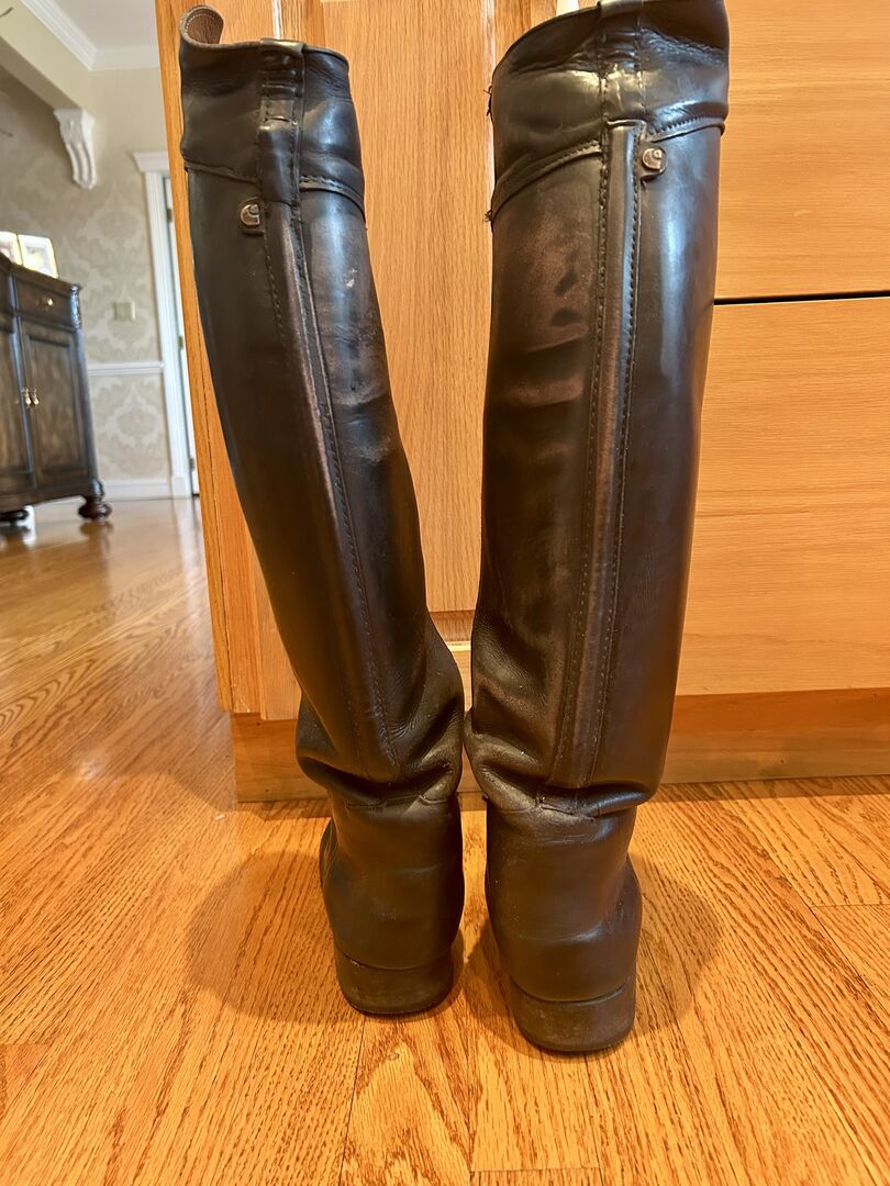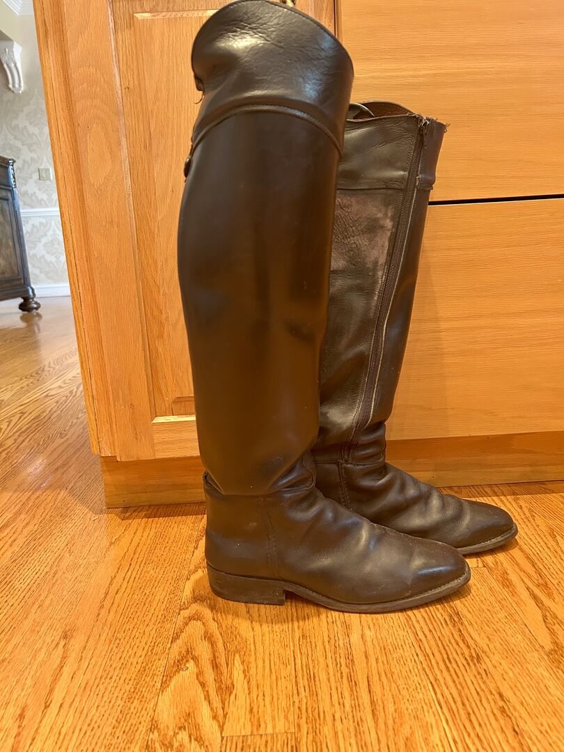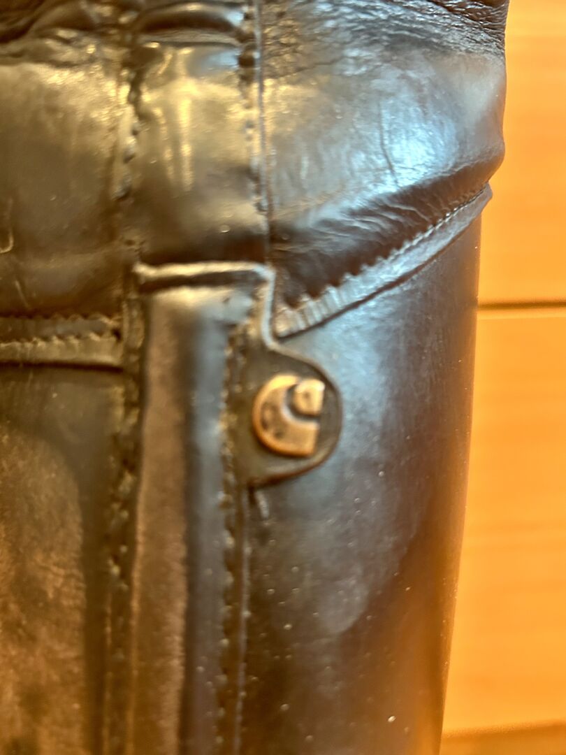 Diese Cavallo, eine bekannte und hochwertige Marke aus Italien, sind Dressurstiefel von höchster Qualität. Sie sind aus schwarzem Leder mit Innenreißverschlüssen, so dass sie leicht an- und ausziehen. Sie sind aus Vorbesitz, aber in gutem Zustand. Die Stiefel sind eingelaufen, so dass Sie sie nicht selbst einlaufen müssen, was eine ziemlich unangenehme Erfahrung ist! Bei Interesse können diese Stiefel mit einem mit Fleece gefütterten Stiefelsack, der in neuwertigem Zustand ist, gebündelt werden. Boot Pulls und ein Boot Jack kann auch enthalten sein. Nachricht für ein Angebot über die Bündelung der oben aufgeführten Produkte.