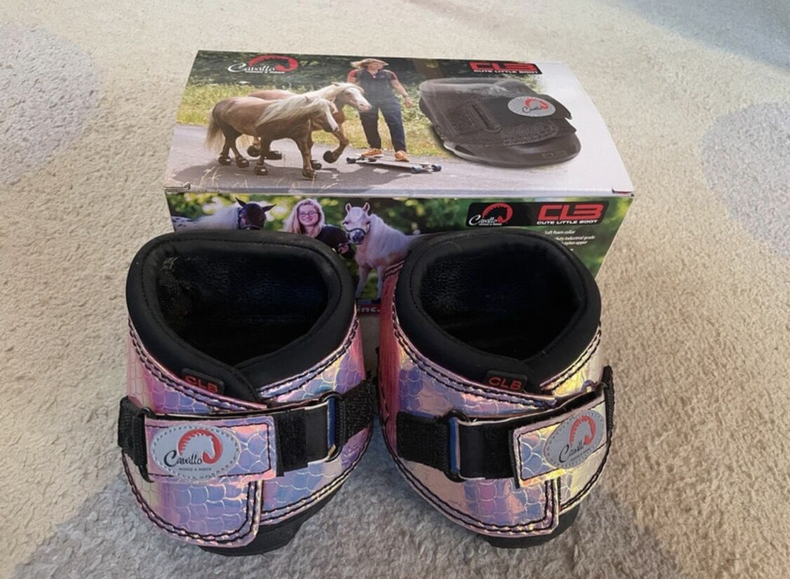 Die Hufschuhe wurden nur einmal zum Probieren verwendet, leider sind sie zu groß.