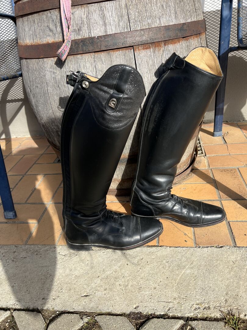 Verkaufe meine selten getragenen Stiefel von Cavallo (Maße auf dem letzten Bild) Leider ist mir der Zipper vom Reißverschluss abgebrochen, kann man aber sicher von einem Schuster für kleines Geld reparieren lassen. Man sieht auch leicht wo die Sporen saßen. Ansonsten sind die Stiefel in gutem Zustand.