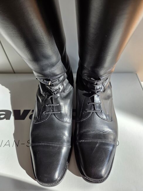 Reitstiefel in schwarz. Die Stiefel sind aus echtem Leder gefertigt und sehr bequem.