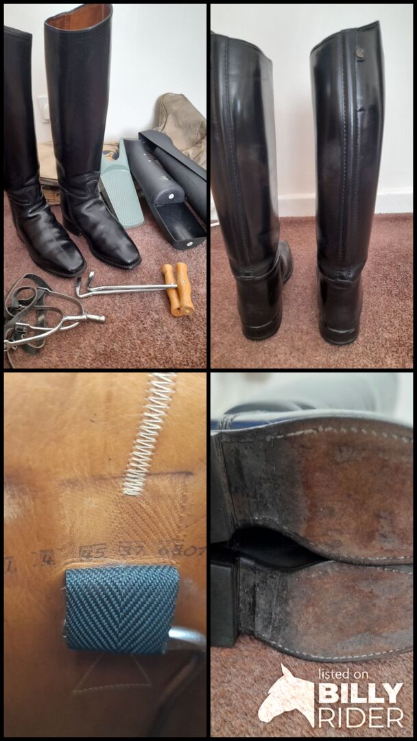 Cavallo Reitstiefel. UK Größe 4. 45cm hoch, 37cm runde Wade. Code-Nummer 68010. Im Verkauf enthalten sind Stiefelknecht, Stiefelzüge, Qualitätssporen und -spanner sowie Tasche (Tasche muss ersetzt werden). Benutzt, aber wir werden gepflegt. Zu verkaufen, da nicht mehr reiten.