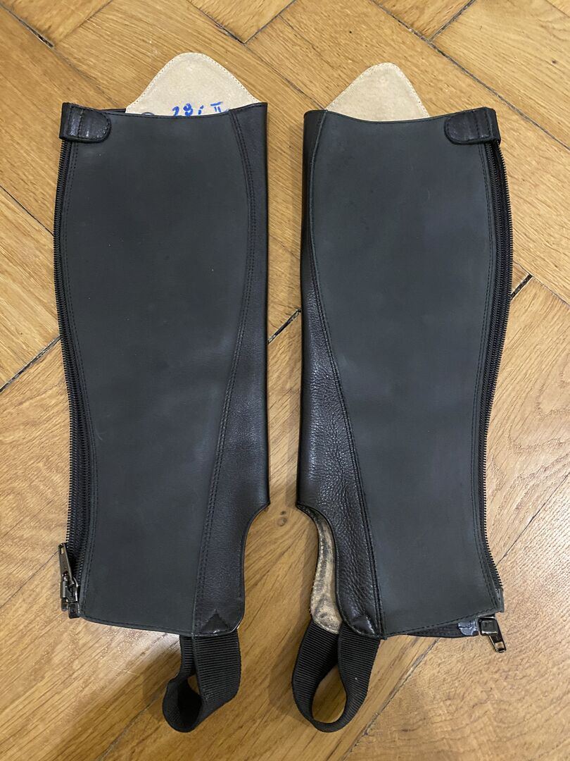 abzugeben sind die abgebildeten Leder Chaps in Gr. xs. Weitere Maße findet ihr bei den Fotos (gemessen jeweils ab Reißverschluss). Ich habe die Chaps 3 mal benutzt, daher super Zustand!
