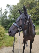 Die Württemberger Vollblut-Mix-Stute ist grundsätzlich nicht schreckhaft und macht sehr viel mit. Dennoch kann sie ihre "fünf Minuten" haben, in denen sie testet oder auch einmal einen kleinen Bocksprung macht. Deshalb gehört sie in erfahrene Hände.