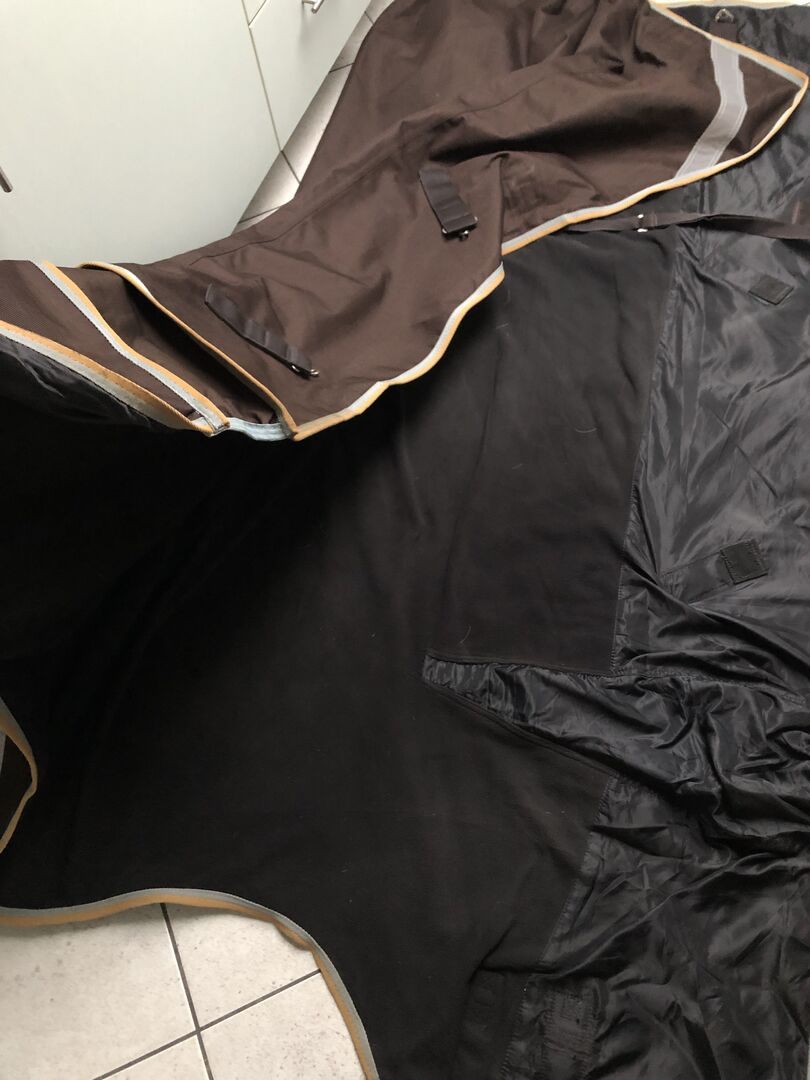 Verkaufe eine Outdoordecke von Cheval de Luxe in Größe 145 mit Highneck Schnitt und Fleece innen. Sie hat 0g und ist für das ganze Jahr. 1200 Denier, 5000mm Wassersäule. Kann vorne verstellt werden (siehe Bild) Mit Reflektoren 140€ Neupreis Infos und Herstellerangaben zur Decke auf den letzten drei Bildern.