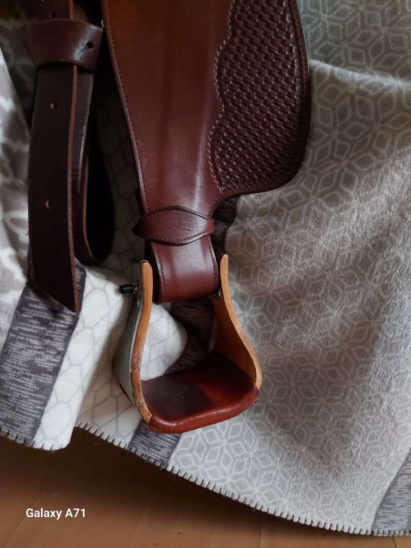Lieferumfang: Sattel, westernsattelgurt und Wade/ Buckaroo-Steigbügel von Bernd Hackel
