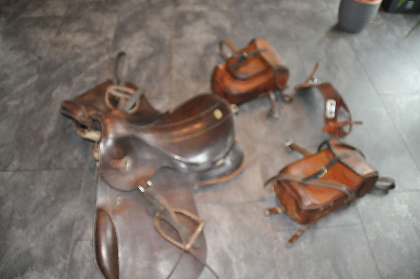 Ein passender, verstellbarer Leder-Sattelgurt (nicht Original) ist ebenfalls dabei.