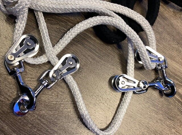 Ich biete eine schöne, neuwertige Doppellonge, die kaum gebraucht wurde. Sie ist absolut in Ordnung, weist keinerlei Gebrauchsspuren oder Defekte auf und ist frisch gewaschen (Nichtraucherhaushalt). Sie ist schwarz-weiß und hat vier Umlenkrollen mit Karabiner-Haken sowie am Ende zwei Karabinerhaken. Den schwarzen Teil kann man gut in der Hand halten. Ich verkaufe mein Zubehör, weil ich meine Stute in Rente geschickt habe.
