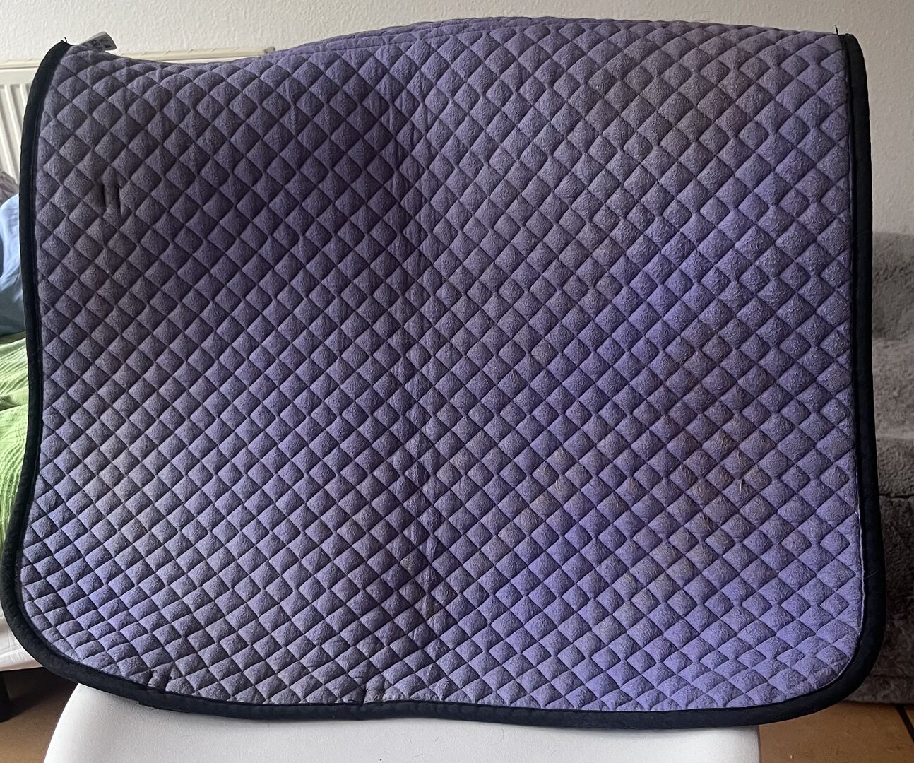 Dressur Schabracke der Marke Equest in einem schönen flieder. Frisch gewaschen aber es sind trotzdem noch Haare vorhanden. Leichte Gebrauchsspuren.
