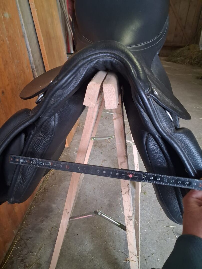Der Sattel ist in einem guten, gepflegten Zustand und bietet durch seinen tiefen Sitz und die ausgeprägten Kniepauschen einen sicheren und komfortablen Sitz.
