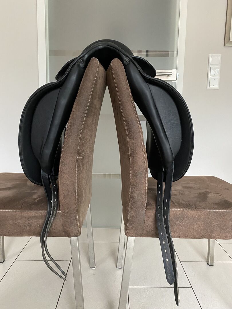 Der Sattel verfügt über einen breiten Wirbelkanal, der dem Trapezmuskel maximale Freiheit bietet - große Schulterfreiheit. Er ist super bequem und das Leder ist weich. Tiefer Sitz und guter Halt dank der großen Pauschen.
