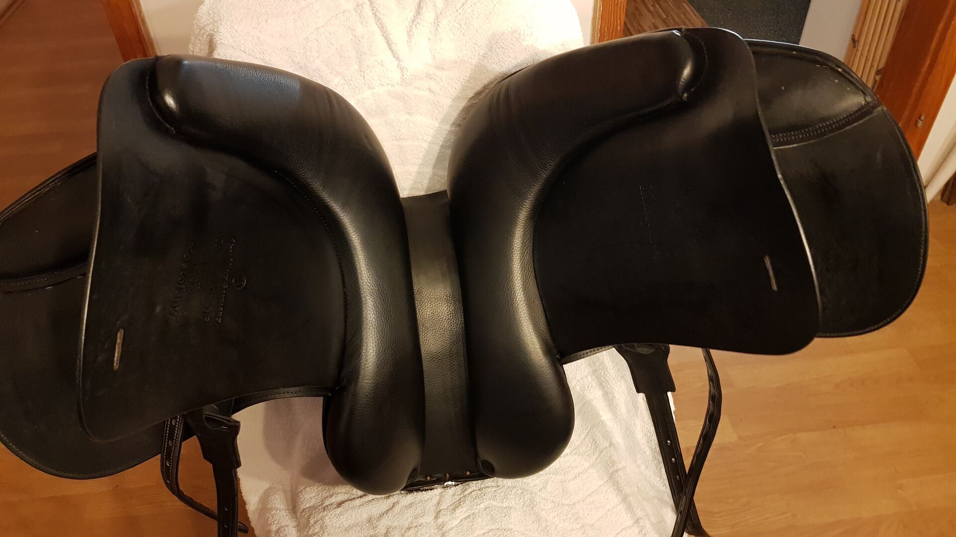 Biete meinen leider meinem Pferd nicht mehr passenden Kostolany, Größe 18 Zoll, schwarz mit dem typischen Butterfly Scharnier System und Brückeneisen statt eines normalen Kopfeisens. Am Sattelkranz befindet sich leider ein Kratzer (siehe Foto) , ansonsten sehr guter gepflegter Zustand Maße bitte auch den Fotos entnehmen. Versand möglich, Barzahlung bei Abholung oder PayPal, Anprobe gegen Hinterlegung des Kaufpreises möglich. Standort ist 56766 Auderath, nicht Horperath...leider kann ich das irgendwie nicht ändern..