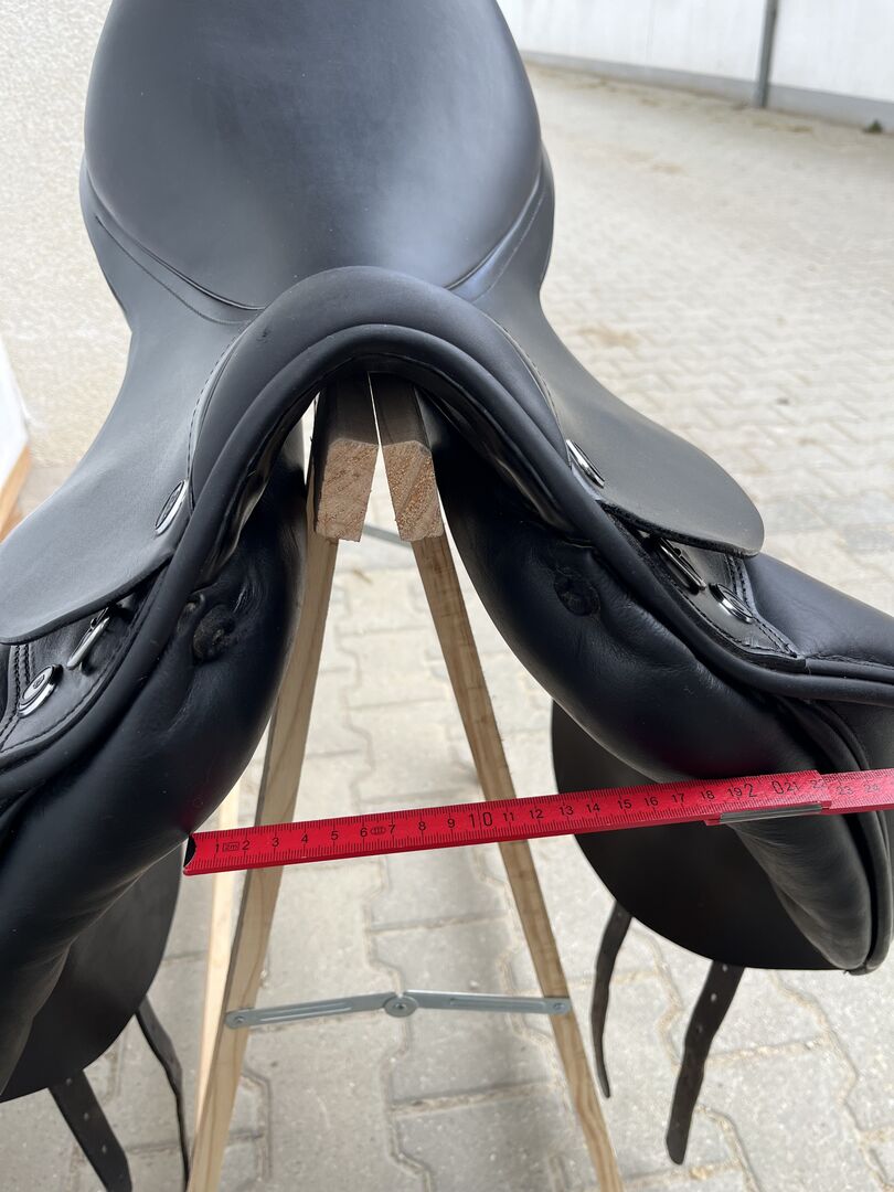 Schweren Herzens trenne ich mich von meinem Dressursattel, da er meinem Jungpferd nicht mehr passt. Er war zwei Jahre in meinem Besitz und wurde sehr gut gepflegt. Bis auf zwei kleine Schrammen, (siehe Bilder) welche ich beim Kauf übernommen habe, ist er in einem sehr guten Zustand. Außerdem ist er frisch gepolstert. Sämtliche Maße sind den Bildern zu entnehmen.