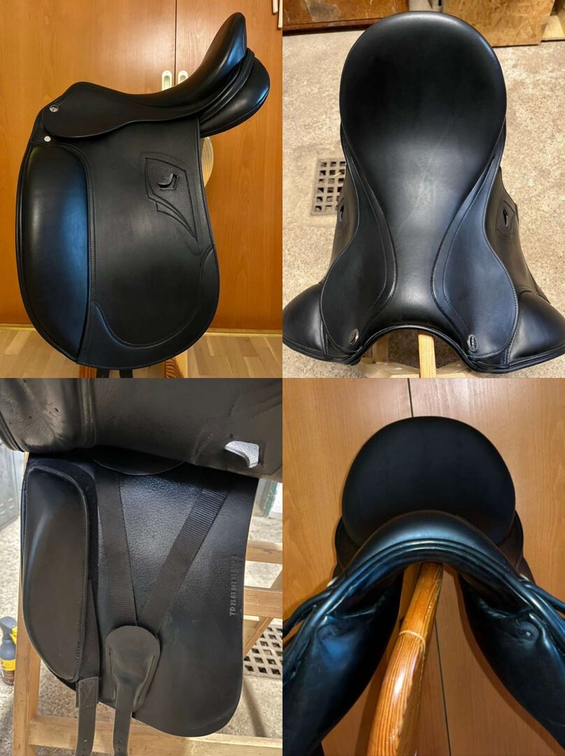 Dressursattel (entstammt aus der Erreplus Sattlerei und ist somit der „billige“ Bruder von Erreplus) mit einer Sitzfläche von 17“ und einer 33er Kammer. Der Sattel ist vom Sattler in der Kammer anpassbar.