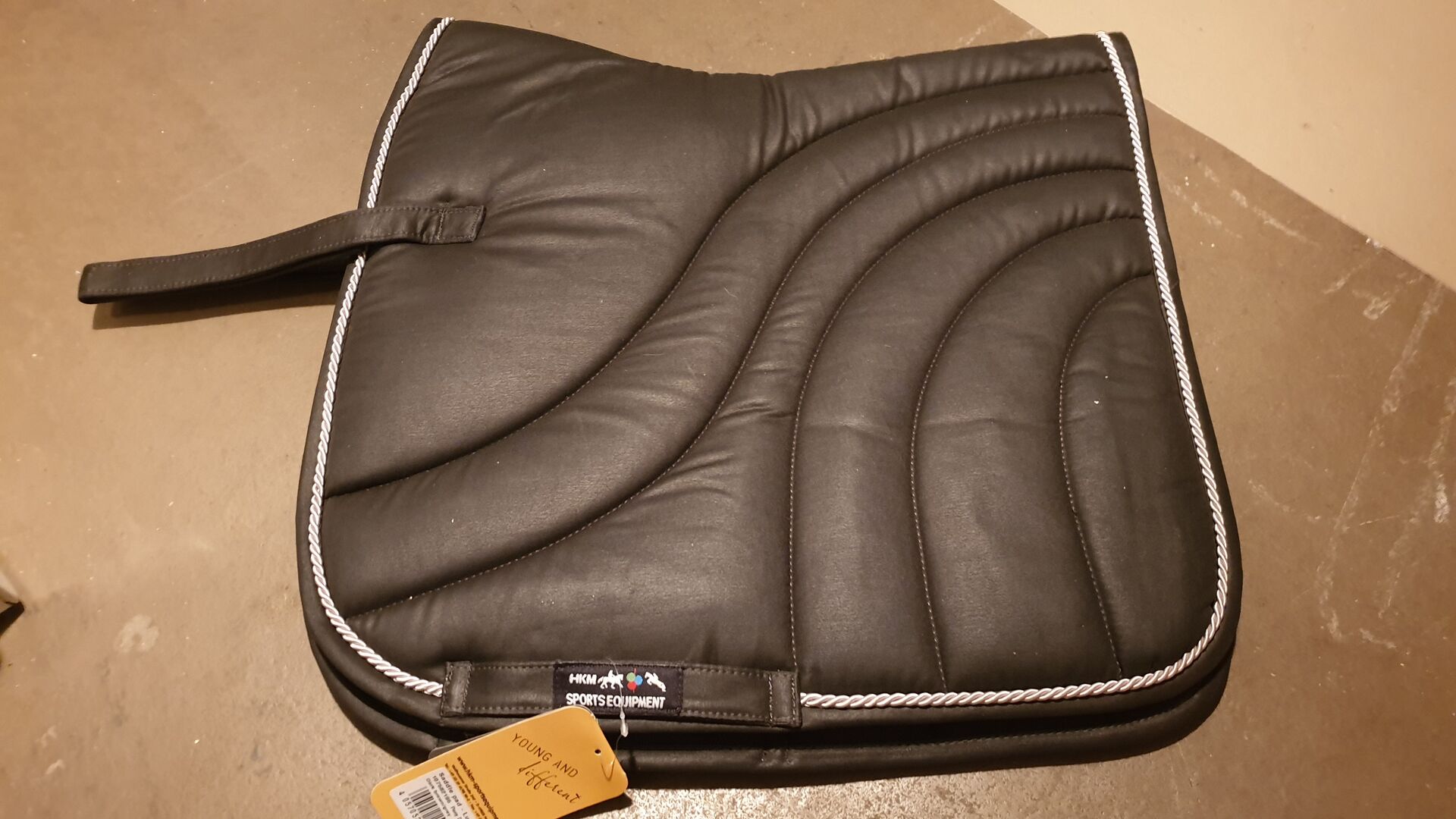 Schwarze, wellig abgesteppte Schabracke in mittlerer Dicke eingefasst mit einer eleganten Biese